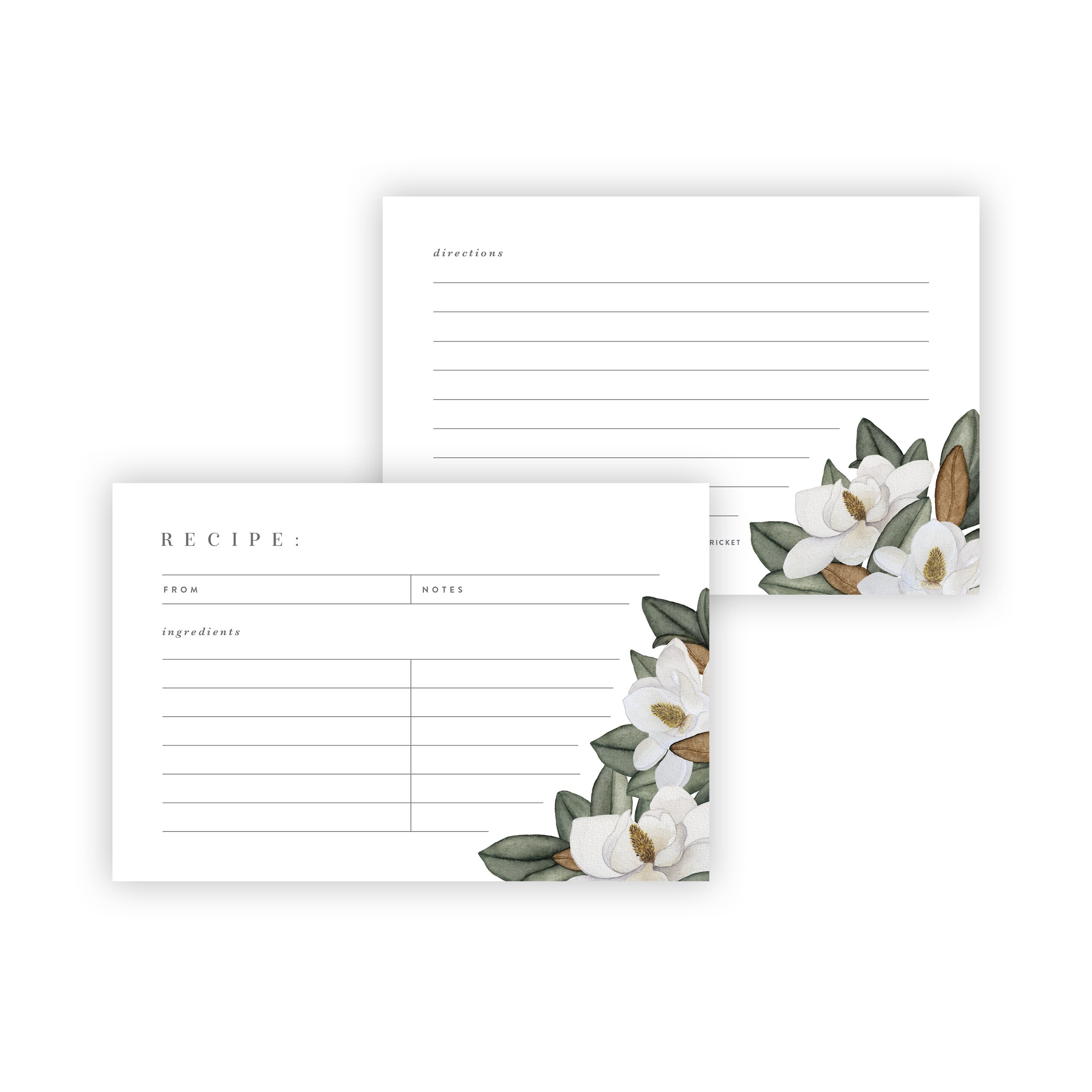 White Magnolia Flower Recipe Cards For Recipe Box Cooking Etsy